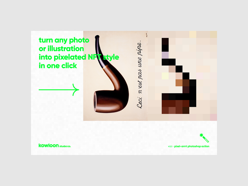 • turn any photo or illustration into pixelated NFT style in one click